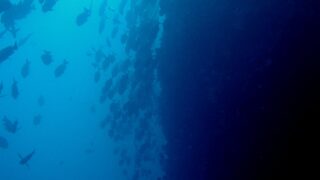 戯れている?ギンガメアジさんとマダラタルミさん! パラオ水中で崖状になってる地形のことをドロップオフと言いますがそんな崖になっている岸壁沿いの中層をダイビングしていきます・・・パラオなどのドロップオフでは一番下は70m~90mくらいまで深度...