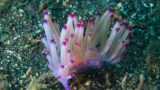 - スズキ目ハゼ科で人気者のネジリンボウさんは大きさは6cm程度で岩礁やサンゴ礁に続く砂底で暮らしていてテッポウエビさんと仲良く共生してるハゼさんです・・・ネジリンボウさんを横から見ると黒い縞が斜めになっているので体をぐるぐるとネジの様に繋がった縞に見えますが実は繋がっていません・・・ネジリンボウさんは普通ペアで一緒に暮らしていますがたまに近似種で背びれの長いヒレナガネジリンボウさんと同居していることもあります・・・確かに背びれが長いこと以外はよく似たヒレナガネジリンボウさんですが違う種類なのに一緒に住むとは昔は同じ種類だったんでしょうか?