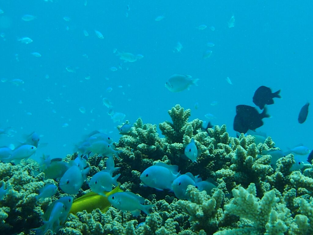 光が燦燦と降り注ぐ中で乱舞するデバスズメダイさん! ケラマ
