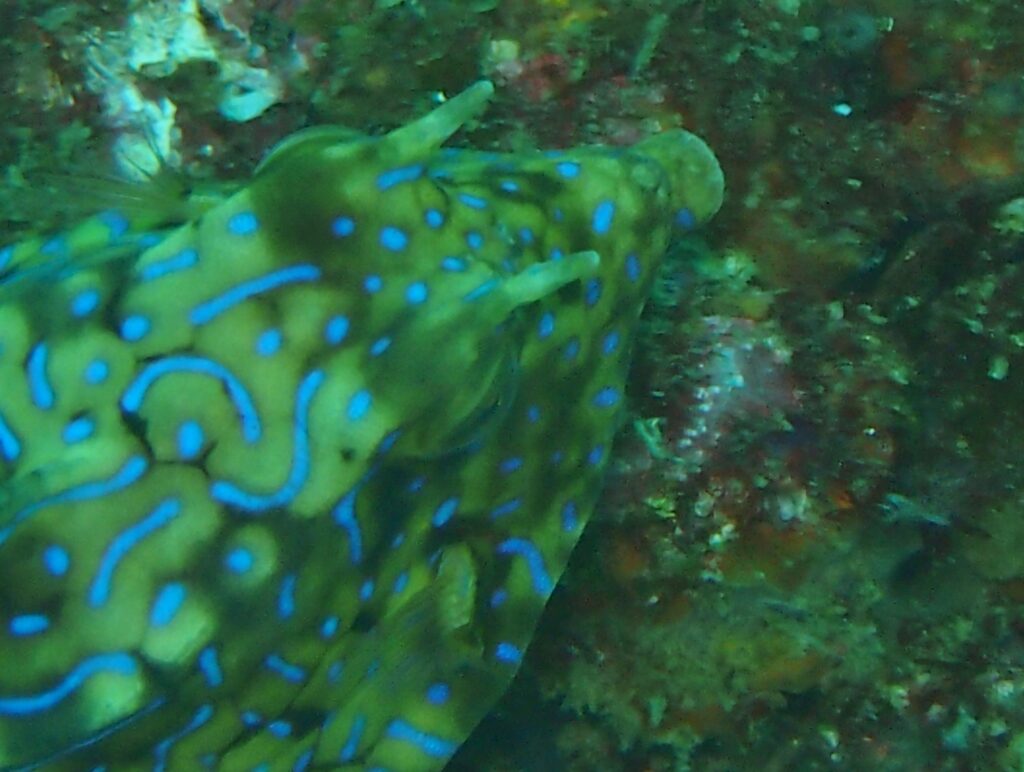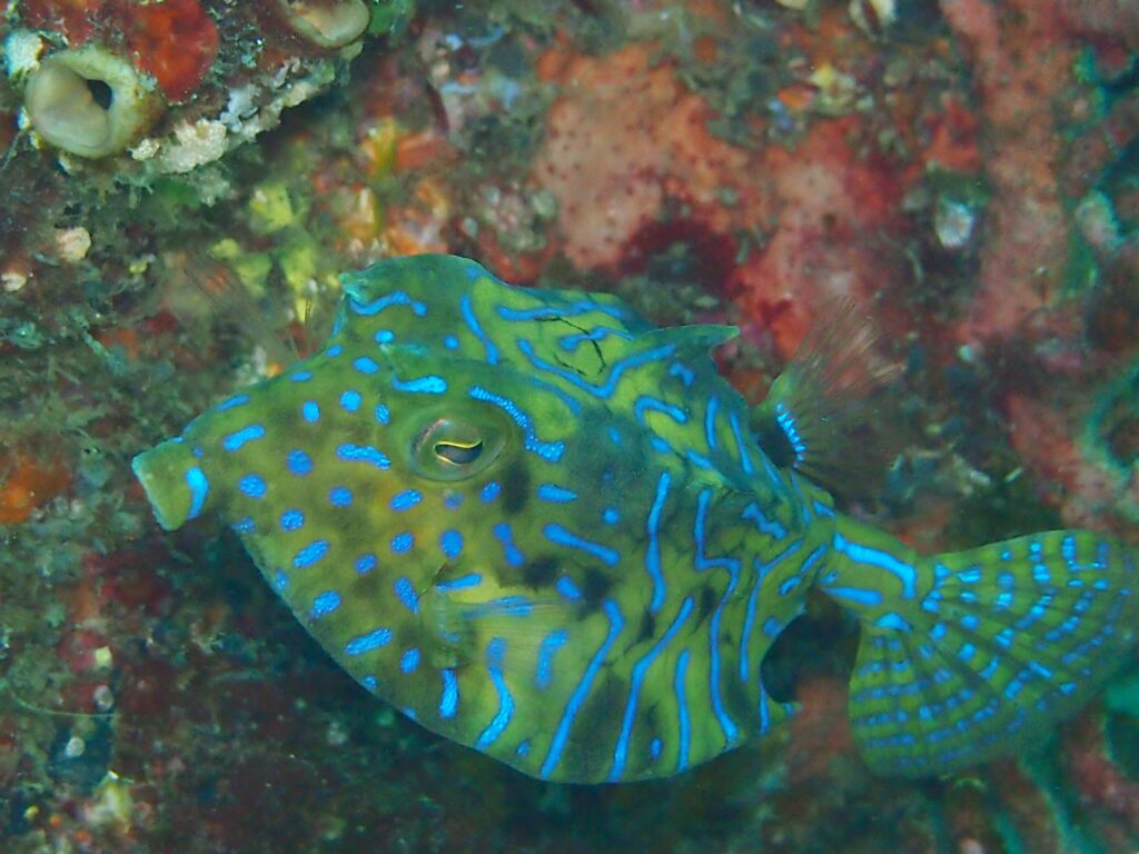 生きている時は綺麗な青い斑紋があるハマフグさん! 宮崎南郷