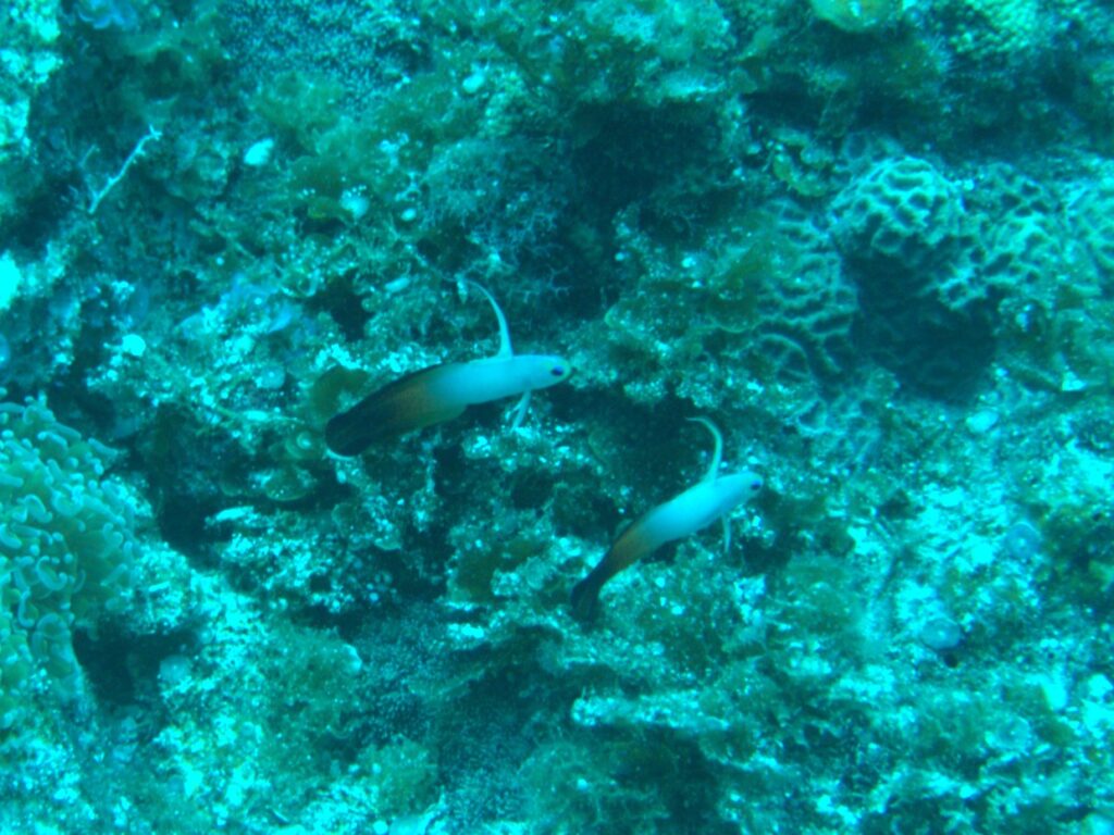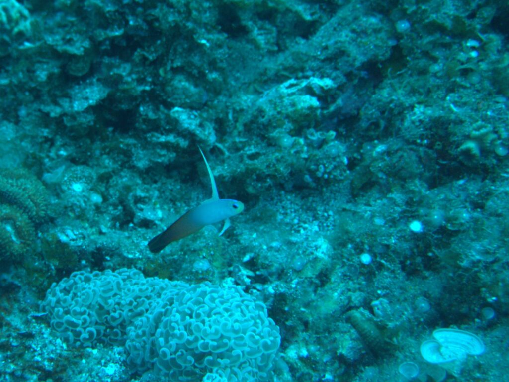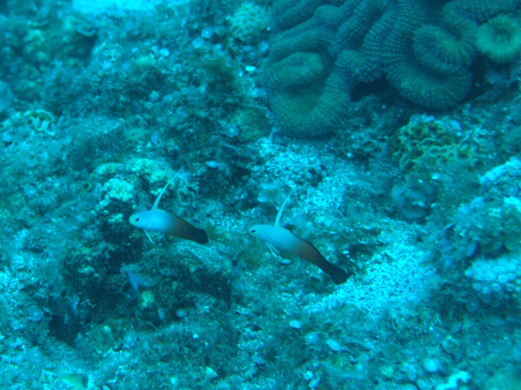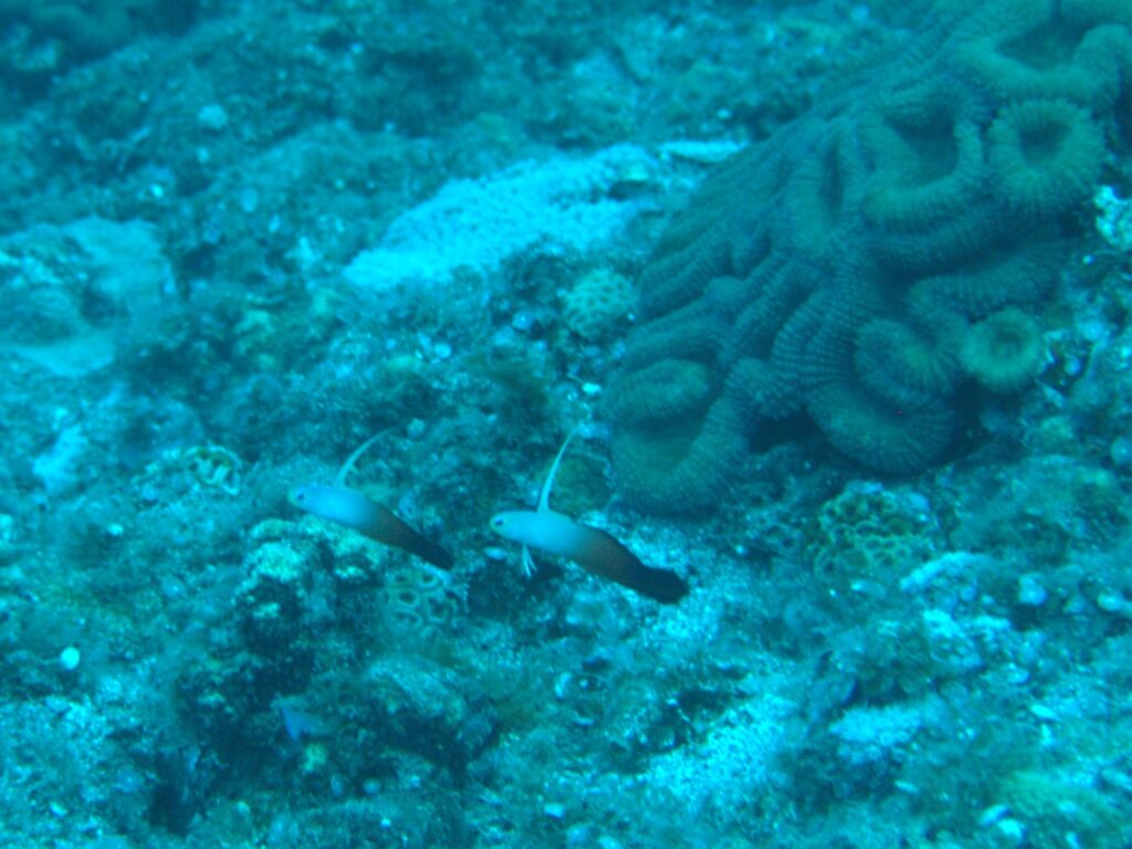 - ちょっと潮の流れによって曲がっていますが写真の様にピンと立ったユニークな背鰭が旗に似ていることからハタタテハゼさんという名前がついています・・・ハタタテハゼさんはペアでいる事がほとんどですが雌雄を見分ける方法は難しく外見上の違いはほとんどありません・・・しいて言えばオスの方が警戒心が強いのか臆病なのかよくわかりませんがオスはメスより素早く巣穴に逃げこみます・・・という事は1匹で見かけるハタタテハゼさんはメスの度胸あるハタタテハゼさんということでしょうか?・・・またハタタテハゼさんの産卵期は春でメスは産卵期に腹が大きくなる傾向があるのでそこでも区別できます・・・ハタタテハゼさんのオスはせっせと卵を産む場所を掘りメスが卵を産み付けますが産卵後はオスが卵を保護し孵化するまで世話をするそうです・・・臆病なだけかと思いましたがなかなか健気なオスのハタタテハゼさんなのです。