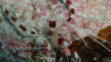 - 下のオニオコゼさんは最初写真を見た時エンマゴチさんかなと思ったのですがエンマゴチさんであれば虹彩皮膜というものがあり目をすだれのようなものが覆っているのでエンマゴチさんとちょっと違うし・・・近接過ぎて何を撮ったのかよくわかりませんでしたが写真はやはり近接と遠景も一枚撮らないと迷ってしまいますね・・・オニオコゼさんの体の色は褐色系が多いのですが色彩変異に富んでいて私は見たことはないのですがオレンジ色の珍しい種類もあるそうです・・・底に潜んでいいるオニオコゼさんは口が上向きについていて身体の上を通ったお魚さんにバクっとかぶり付くのに適した形と大きな口をしているのですが怖いですね・・・下のオニオコゼさんは私の方をじっと見ていますがまさか私を狙っているのではないですよね・・・オニオコゼさんの体の表面は他のカサゴ類と同様にいぼ状・房状の突起が発達し皮膚が剥がれているようにも見えます・・・立派な顎ひげというかもじゃもじゃというか突起がいっぱいありますがこんなにもじゃもじゃ髭が生えていたら髭を剃りたくはならないんでしょうか?
