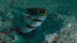- 他のスズメダイ科の仲間は結構攻撃的でツンツンしてくるのですがロクセンスズメダイさんの性格は大人しめで人懐っこいようです・・・それからロクセンスズメダイさんの英名はScissortail sergeantつまりハサミのシッポの軍曹と呼ばれ尾鰭の形と黒いストライプ模様から来ているそうです・・・またロクセンスズメダイさんの背中は青みが強く腹部は白っぽいのですがオヤビッチャさんの地色は灰色で背中はやや黄色味を帯びています・・・でもオヤビッチャさんには体の後ろ半分が黒い変異個体がいたり求愛期に地色が青くなったりもしますので注意が必要です・・・また通称でシリテンスズメダイさんと呼ばれるお魚さんもオヤビッチャさんに酷似していますが尾鰭基部に2つの小黒点があるなどの特徴でオヤビッチャさんと見分けることができます・・・と言ってもそんな違いダイビング中に区別するのは困難かもしれませんね。