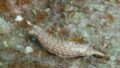 - ゴマフビロードウミウシさんは体長が20mm程度しかないのですがその中でも白色のゴマフビロードウミウシさんはかなりのレア物でよく見られるのは写真の様に黄色の個体か橙色の個体です・・・白色のゴマフビロードウミウシさんはウサギさんのような愛くるしい見た目から「海うさぎちゃん」とか「ごまちゃん」の愛称で呼ばれているそうですが残念ながらまだ見たことは無く一度は見てみたいものです・・・ゴマフビロードウミウシさんはふわふわな毛皮に覆われているように見えますが背面部全体を覆っているのは絨毛状の小さな突起で黒い先端部分がさまざまな模様になっています・・・よくみるとタワシがいっぱいついているみたいで掃除するには良さそうなんてゴマフビロードウミウシさんに失礼ですね・・・それからご存じの通りウミウシさんは雌雄同体の生き物ですがゴマフビロードウミウシさんもオスとメスの両方の生殖器を持っており交配時にパートナーと精子を交換します。